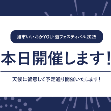 NEWSお知らせ HOME NEWS 【開催決定のお知らせ】旭市いいおかYOU遊フェスティバル 当日券の販売について 10月4日(土)開催プログラム 有料駐車場 / 交通規制について 有料観覧席について 有料観覧席ご購入の方へ当日の注意事項 寄付者ご芳名 【開催リポート】旭市いいおかYOU・遊フェスティバル2024 【開催リポート】旭市いいおかYOU・遊フェスティバル2023 【開催リポート】旭市いいおかYOU・遊フェスティバル2022 ホームページをリニューアルしました。 2021花火大会及びイベントの中止について
