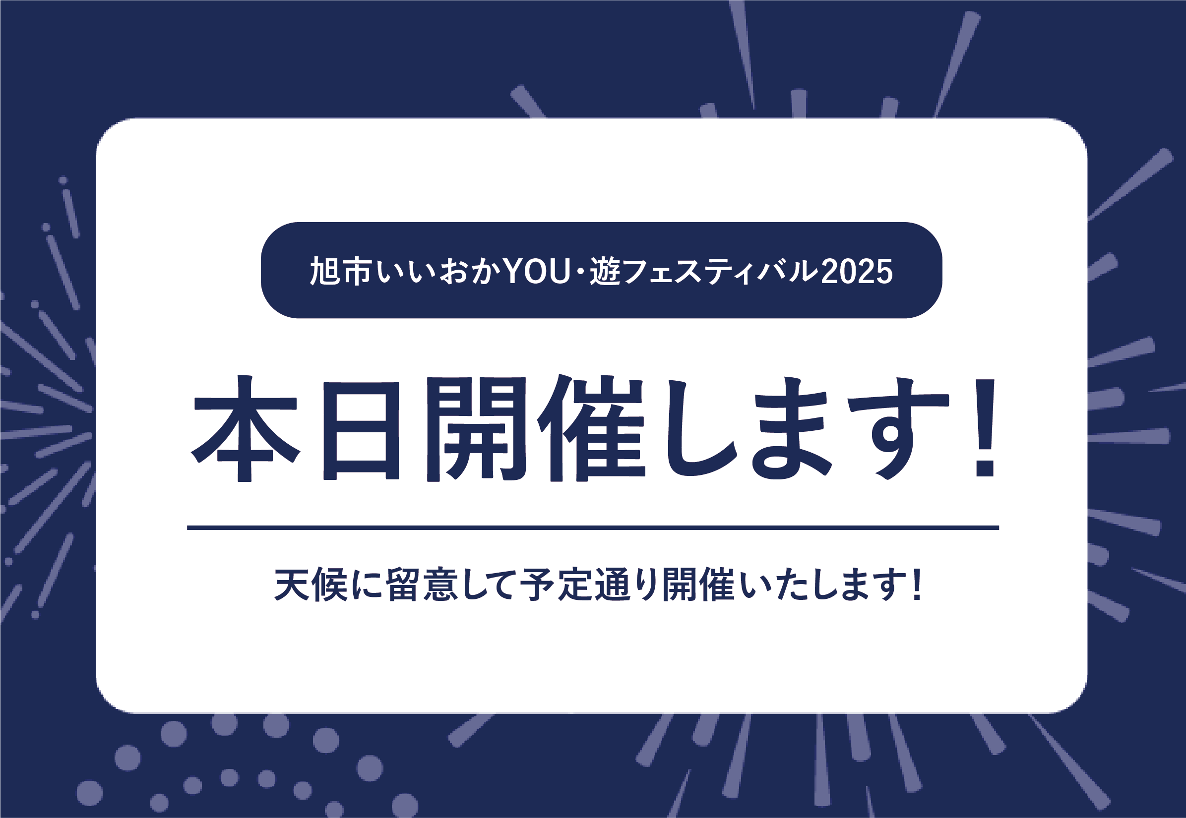 NEWSお知らせ HOME NEWS 【開催決定のお知らせ】旭市いいおかYOU遊フェスティバル 2025.10.04 【開催決定のお知らせ】旭市いいおかYOU遊フェスティバル 本日、「旭市いいおかYOU遊フェスティバル」は予定どおり開催します! 天候の状況を踏まえ、安全面に十分配慮しながら実施いたします。皆さまのご来場を心よりお待ちしております。 BACK to LIST NEXT > BACK to LIST